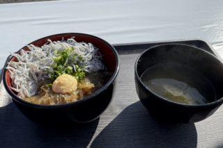 代わりに釜揚げしらす丼とまぐろ漬け丼を食べましたが、釜揚げしらすも港で食べるとうまい!味噌汁もついてきて、生しらすが食べられなくても十分満足できます。